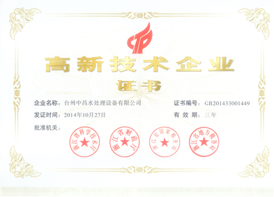 臺州中昌高新技術(shù)企業(yè)證書(shū)