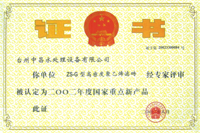 2002年濾磚產(chǎn)品證書(shū)